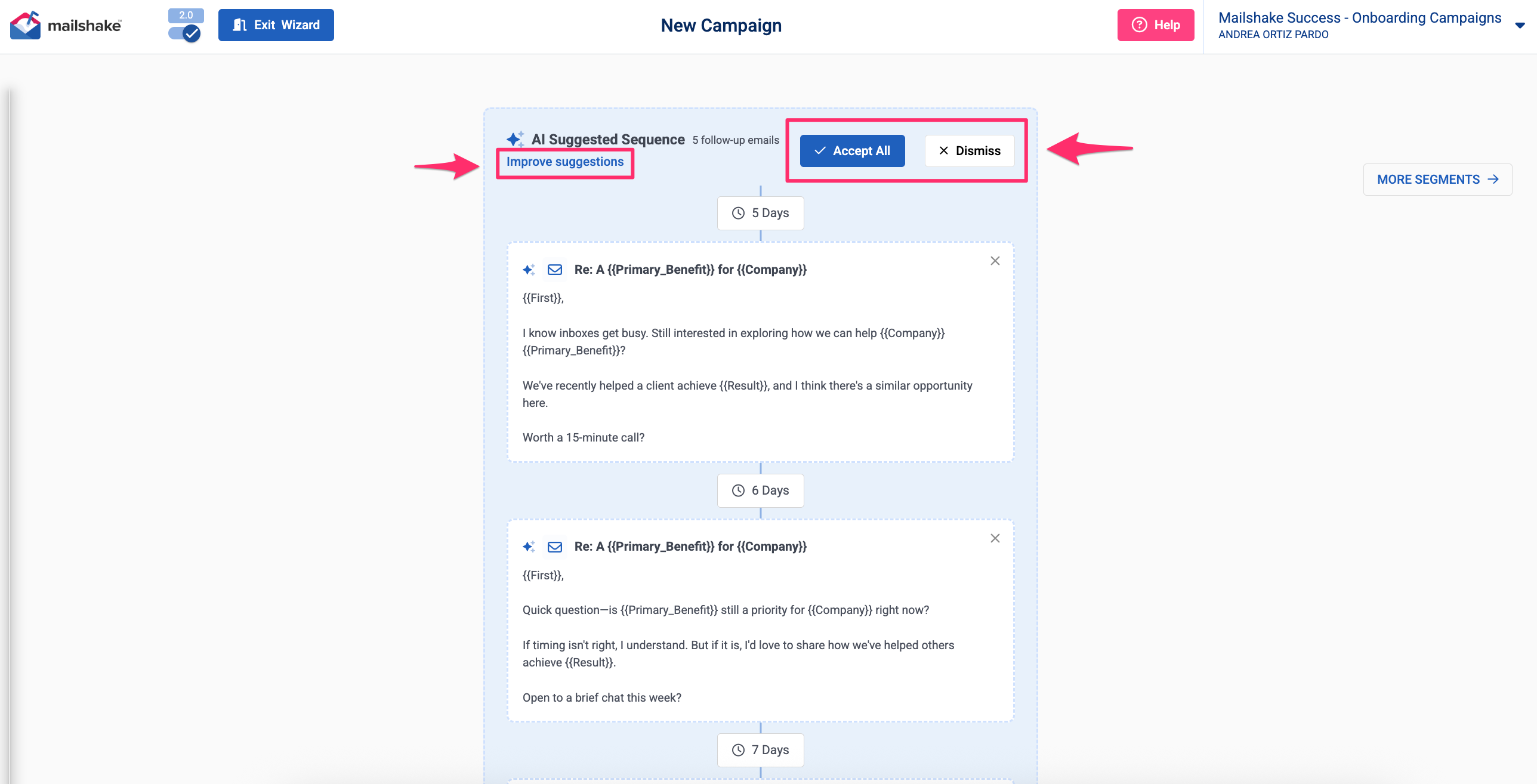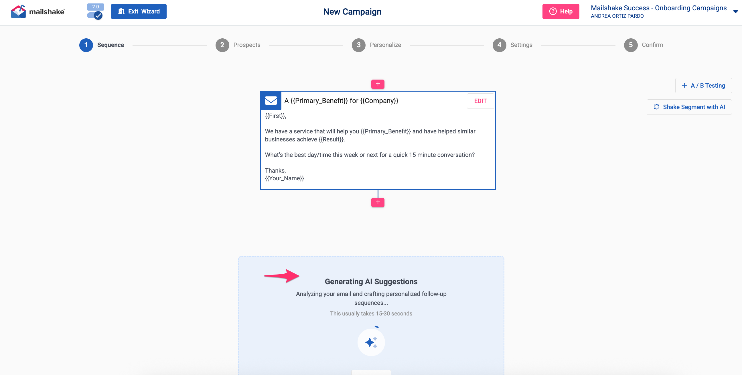 AI Sequence Suggestions helps you quickly build a complete campaign by automatically generating follow-up emails after you write your first message.
